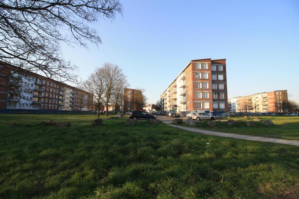 L’ensemble HLM, dans le quartier des Bois Blancs à Lille, doit son nom aux trois rues qui le composent – Coli, Nungesser et Guynemer – et à celle qui le borde – Mermoz. Six barres (deux par rue) abritent 350 logements (360 à l’origine). Un peu plus d’une centaine sont vides.